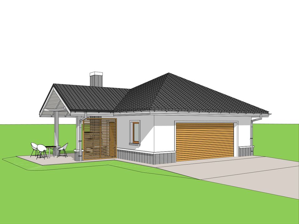 Graficzne opracowanie rzutów poglądowych widocznych na karcie projektu zostało wykonane przez Extradom.pl. Prezentowane przez Extradom.pl wizualizacje wykonane zostały przez autora projektu i należy poczytywać je jedynie za przykład i propozycję wykończenia, wizję architektoniczną autora projektu. Ostateczne wykończenie budynku może nastąpić na wiele sposobów. Szczegółowe rozwiązania zastosowane w oferowanej dokumentacji - w tym również ilość, lokalizacje i wygląd okien, drzwi, kominów - mogą w niewielkim stopniu różnić się od prezentowanej wizualizacji budynku.