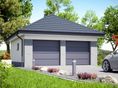 Ściany w technologii murowanej z betonu komórkowego z dachem o konstrukcji drewnianej pokrytym dachówką ceramiczną lub cementową. Wykończenia: tynk akrylowy, podmurówka obłożona okładziną kamienną. Bramy wjazdowe zaprojektowano jako podnoszone o wym. 2,5 m x 2,2 m.