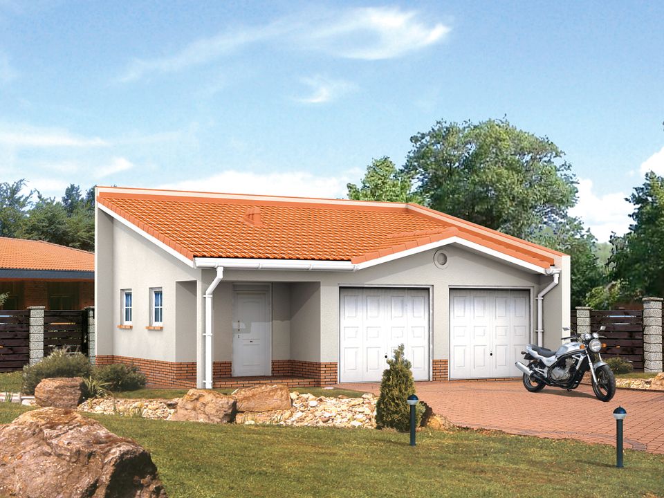 Graficzne opracowanie rzutów poglądowych widocznych na karcie projektu zostało wykonane przez Extradom.pl. Prezentowane przez Extradom.pl wizualizacje wykonane zostały przez autora projektu i należy poczytywać je jedynie za przykład i propozycję wykończenia, wizję architektoniczną autora projektu. Ostateczne wykończenie budynku może nastąpić na wiele sposobów. Szczegółowe rozwiązania zastosowane w oferowanej dokumentacji - w tym również ilość, lokalizacje i wygląd okien, drzwi, kominów - mogą w niewielkim stopniu różnić się od prezentowanej wizualizacji budynku.