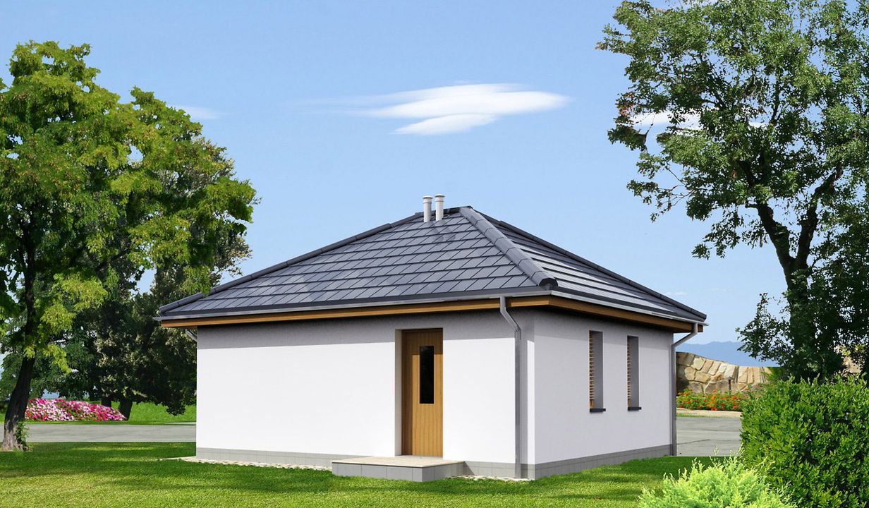Graficzne opracowanie rzutów poglądowych widocznych na karcie projektu zostało wykonane przez Extradom.pl. Prezentowane przez Extradom.pl wizualizacje wykonane zostały przez autora projektu i należy poczytywać je jedynie za przykład i propozycję wykończenia, wizję architektoniczną autora projektu. Ostateczne wykończenie budynku może nastąpić na wiele sposobów. Szczegółowe rozwiązania zastosowane w oferowanej dokumentacji - w tym również ilość, lokalizacje i wygląd okien, drzwi, kominów - mogą w niewielkim stopniu różnić się od prezentowanej wizualizacji budynku.
