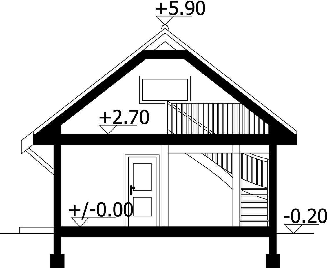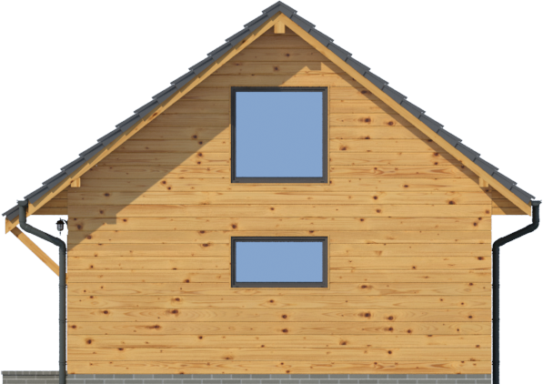 Wysokość ścianki kolankowej: 0.24 m. Strop: drewniany. Pokrycie dachu: dachówka ceramiczna. Ściany zewnętrzne: szkieletowe drewniane ocieplone wełną mineralną. Ściany wewnętrzne: szkieletowe drewniane. Typ ogrzewania: brak.