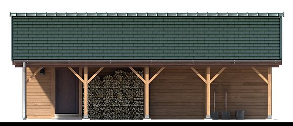 dach: blachodachówka, kąt 20° elewacje: deska elewacyjna ściany: drewniane