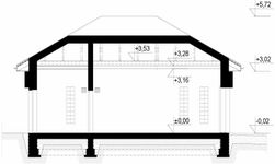 Graficzne opracowanie rzutów poglądowych widocznych na karcie projektu zostało wykonane przez Extradom.pl. Prezentowane przez Extradom.pl wizualizacje wykonane zostały przez autora projektu i należy poczytywać je jedynie za przykład i propozycję wykończenia, wizję architektoniczną autora projektu. Ostateczne wykończenie budynku może nastąpić na wiele sposobów. Szczegółowe rozwiązania zastosowane w oferowanej dokumentacji - w tym również ilość, lokalizacje i wygląd okien, drzwi, kominów - mogą w niewielkim stopniu różnić się od prezentowanej wizualizacji budynku.