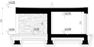 Fundamenty: tradycyjne - na ławach fundamentowych. Strop: żelbetowy wylewany. Ściany: dwuwarstwowe - pustak ceramiczny 25 cm + styropian Termo Organika 20 cm. Dach: stropodach pełny kryty membraną EPDM. Elewacja: tynk silikonowy połączony z kamieniem elewacyjnym. Ogrzewanie: . Wentylacja: grawitacyjna.