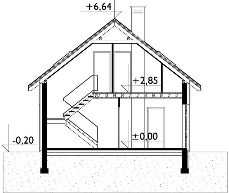 Technologia i konstrukcja: murowana – beton komórkowy. Ściany zewnętrzne: beton komórkowy + styropian. Ściany wewnętrzne: beton komórkowy. Strop: drewniany, polecamy rozwiązanie z belek stropowych STEICO Joist (dostępna również wersja ze stropem żelbetowym. Konstrukcja dachu: drewniana, krokwiowa. Rodzaj schodów: drewniane. Pokrycie dachu: dachówka bitumiczna IKO.