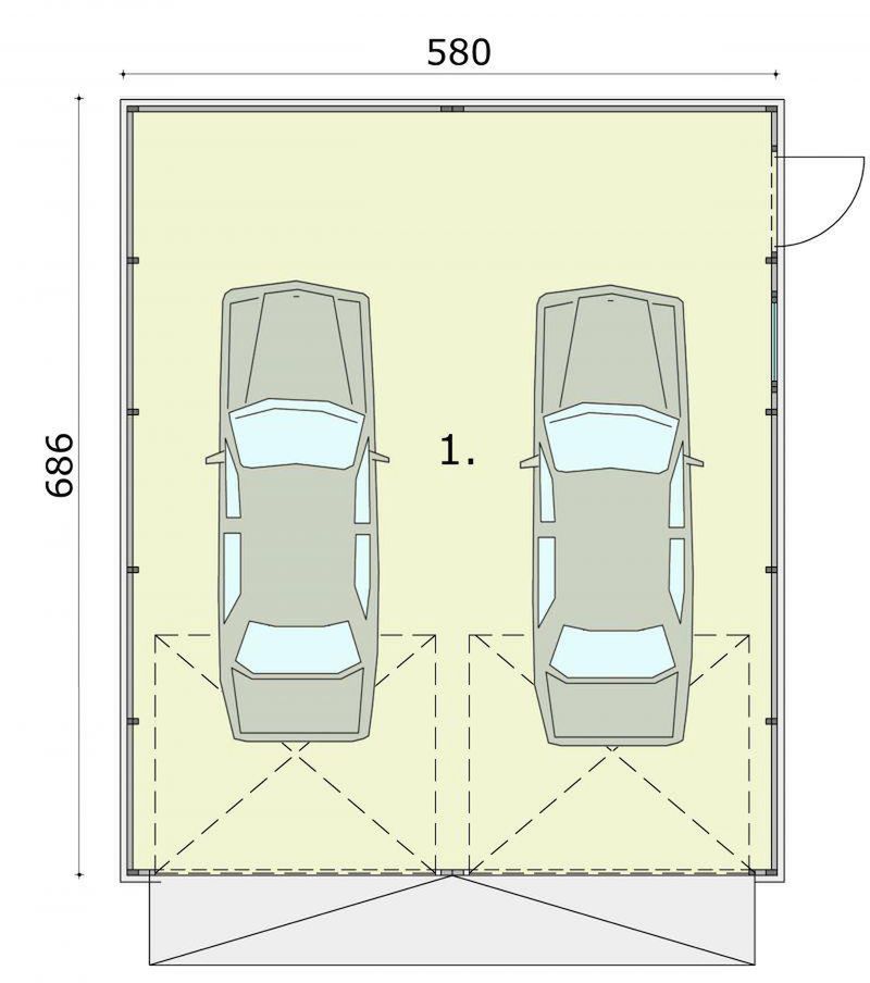 Technologia tradycyjna :- powierzchnia użytkowa -38,53m2 - powierzchnia zabudowy -39,79m2 - powierzchnia całkowita -39,79m2 - kubatura - 121,80m3 - wysokość budynku 3,80m - dach dwuspadowy 27° --budynek zaprojektowano w technologii szkieletu stalowego - pokrycie dachu z blachodachówki- wymiar bram garażowych 2,50x,2,125m.