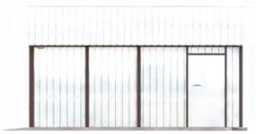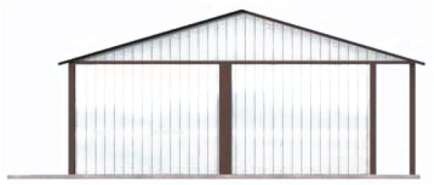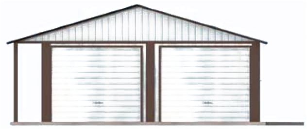 Budynek zaprojektowano w technologii szkieletu stalowego. Pokrycie dachu z blachy trapezowej- wymiar bramy garażowej 2500x2125.