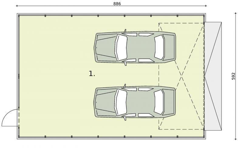 GB24 projekt garażu blaszanego dwustanowiskowego. - SLN1618