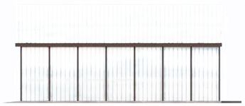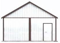 Budynek zaprojektowano w technologii szkieletu stalowego. Pokrycie dachu z blachy trapezowej. Wymiar bramy garażowej 5,00 x 2,125 m.