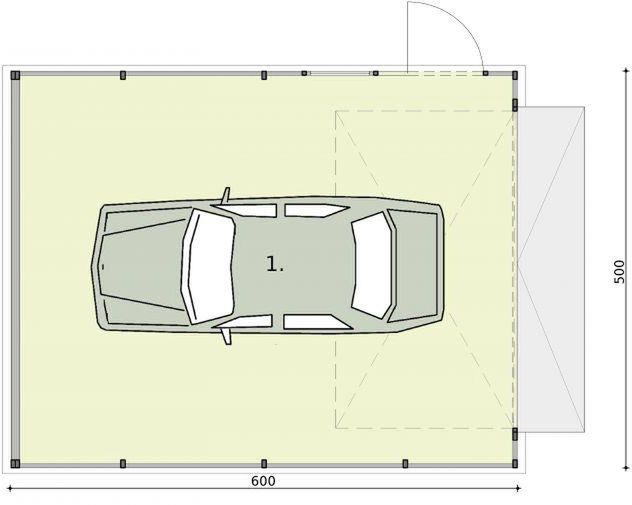 GB25 projekt garażu blaszanego jednostanowiskowego SLN1619