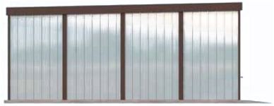 Technologia tradycyjna. Budynek zaprojektowano w technologii szkieletu stalowego. Pokrycie dachu z blachy trapezowej. Wymiar bram garażowych 2,625x2,125 m.