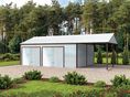 Technologia tradycyjna. Budynek zaprojektowano w technologii szkieletu stalowego. Pokrycie dachu z blachy trapezowej. Wymiar bram garażowych 2,50x2,125 m.