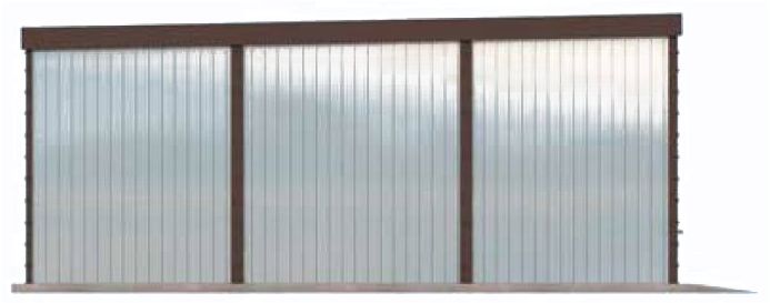 Technologia tradycyjna. Budynek zaprojektowano w technologii szkieletu stalowego. Pokrycie dachu z blachy trapezowej. Wymiar bramy garażowej 2,50x2,125 m.
