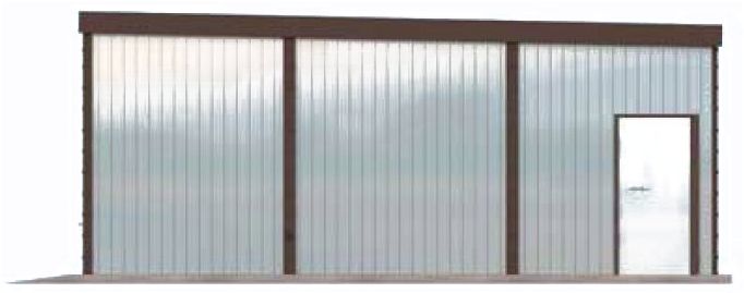 Technologia tradycyjna. Budynek zaprojektowano w technologii szkieletu stalowego. Pokrycie dachu z blachy trapezowej. Wymiar bramy garażowej 2,50x2,125 m.