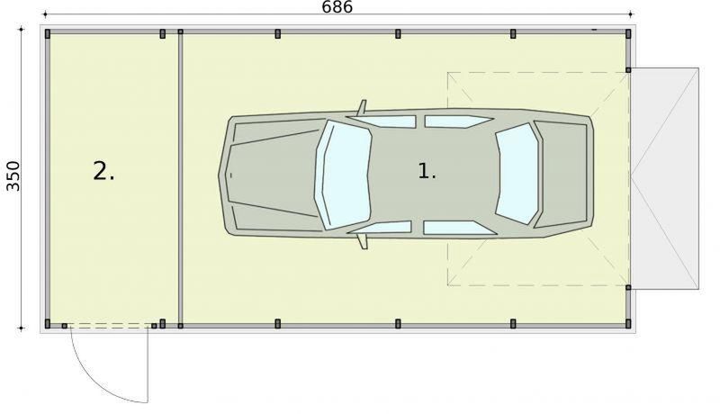 GB35 projekt garażu blaszanego jednostanowiskowego z pomieszczeniem gosp. SLN1762