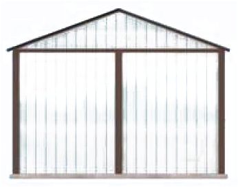 Technologia tradycyjna. Budynek zaprojektowano w technologii szkieletu stalowego. Pokrycie dachu z blachy trapezowej. Wymiar bramy garażowej 2,50x2,125 m.
