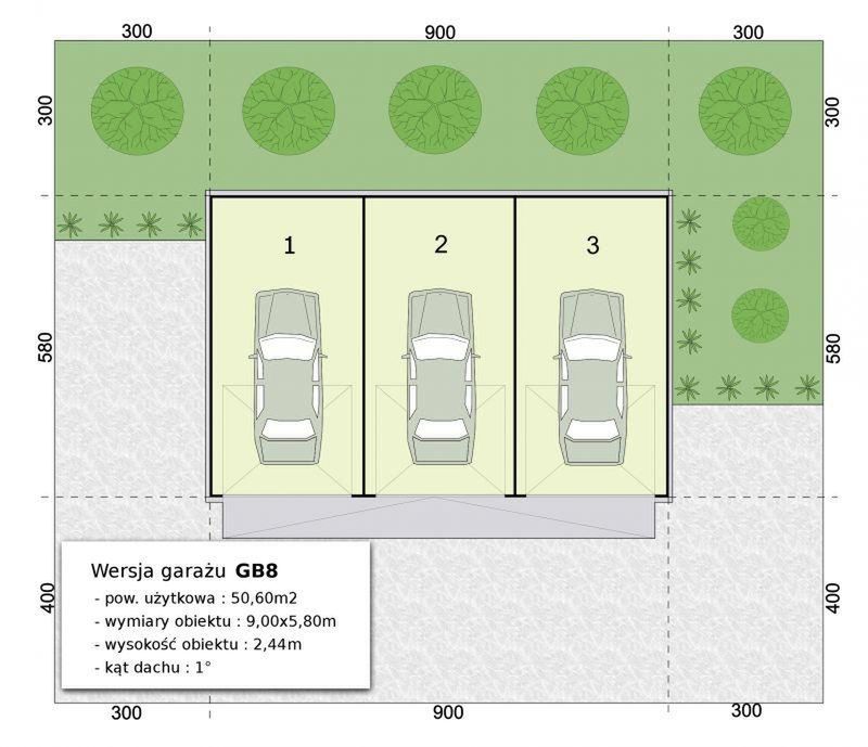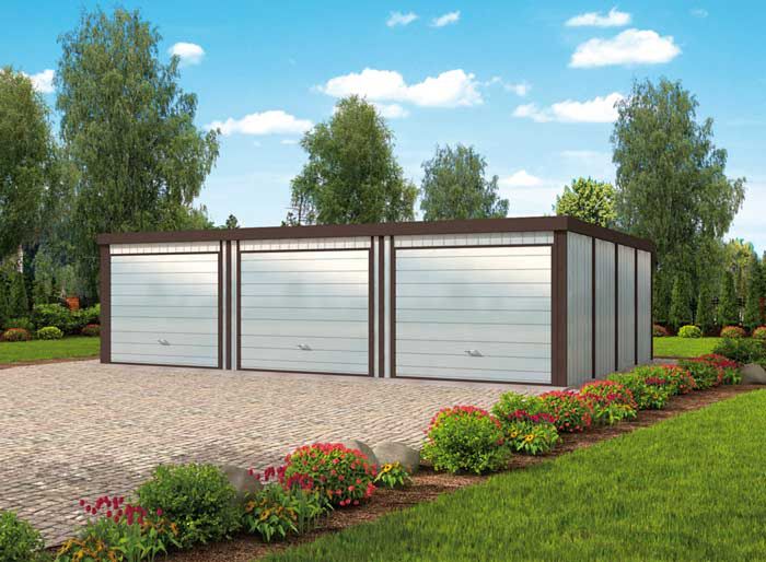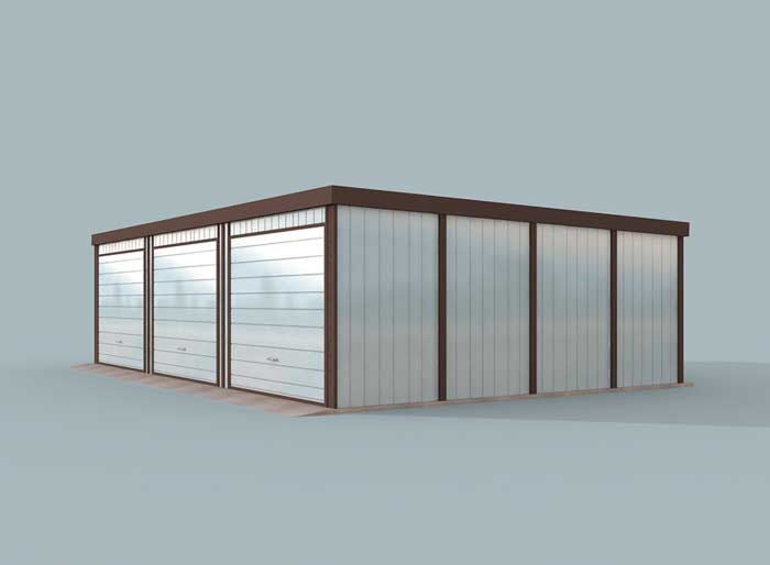 GB39 projekt garażu blaszanego trzystanowiskowego - SLN2164