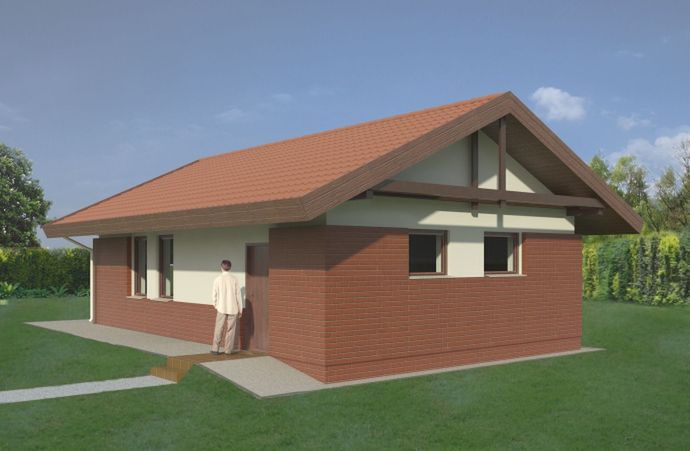 Graficzne opracowanie rzutów poglądowych widocznych na karcie projektu zostało wykonane przez Extradom.pl. Prezentowane przez Extradom.pl wizualizacje wykonane zostały przez autora projektu i należy poczytywać je jedynie za przykład i propozycję wykończenia, wizję architektoniczną autora projektu. Ostateczne wykończenie budynku może nastąpić na wiele sposobów. Szczegółowe rozwiązania zastosowane w oferowanej dokumentacji - w tym również ilość, lokalizacje i wygląd okien, drzwi, kominów - mogą w niewielkim stopniu różnić się od prezentowanej wizualizacji budynku.