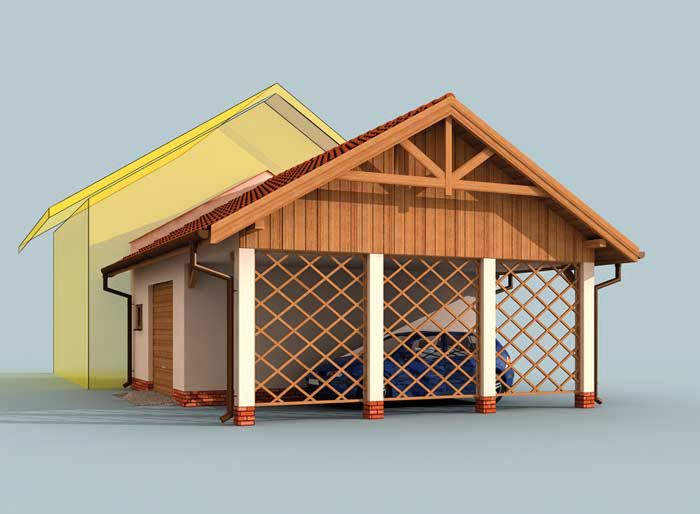 GP10 garaż dostawiany jednostanowiskowy z pomieszczeniem gospodarczym i wiatą - SLN1498