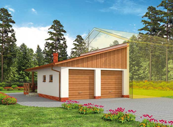 GP12 garaż dostawiany dwustanowiskowy z werandą - SLN1500