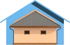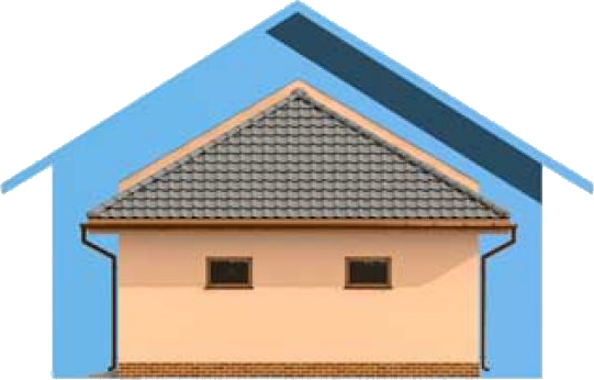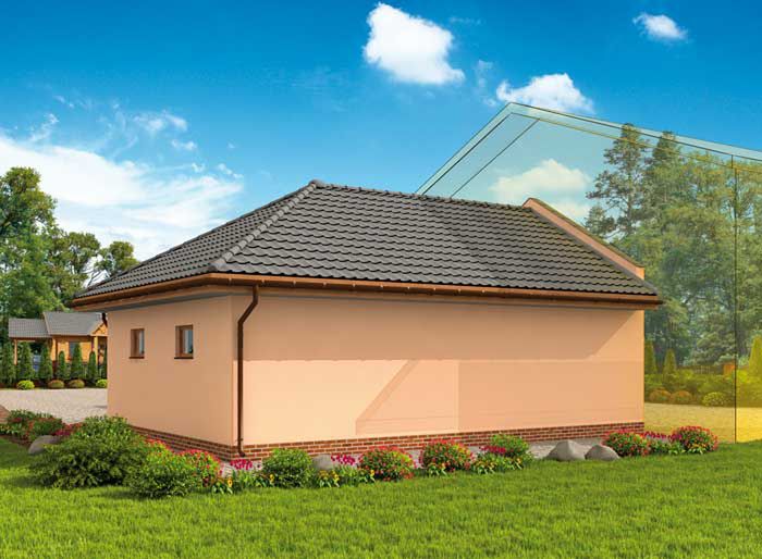 Technologia tradycyjna :- powierzchnia użytkowa budynku -61,75m2- powierzchnia zabudowy -70,00m2 - powierzchnia całkowita -70,00m2 - kubatura -293,00m3 - ściany zewnętrzne nośne murowane grubości 25cm - wszystkie ściany wykonane z pustaków ceramicznych "POROTHERM" - wysokość budynku 5,43m - dach wielospadowy 30° - więźba dachowa drewniana - pokrycie dachu dachówka ceramiczna - wymiar bram garażowych 2,4x2,4m