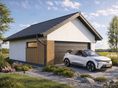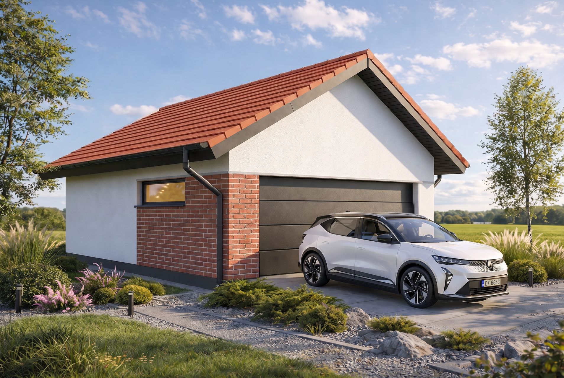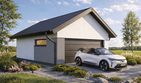 Projekt garażu dwustanowiskowego Monza 2.0+2 z dachem dwuspadowym to funkcjonalne rozwiązanie dla inwestorów potrzebujących miejsca dla dwóch aut oraz wydzielonej strefy magazynowej. Budynek w technologii murowanej posiada dwa niezależne pomieszczenia gospodarcze zlokalizowane w tylnej części, co sprzyja organizacji warsztatu lub schowka na sprzęt ogrodowy. Prosta konstrukcja dachu dwuspadowego pozwala na optymalizację kosztów budowy oraz wygospodarowanie dodatkowej przestrzeni pod połacią.