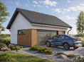 Projekt garażu Monza 2.5 to funkcjonalny garaż dwustanowiskowy, który oferuje znacznie więcej niż tylko bezpieczne miejsce dla Twoich pojazdów. Konstrukcja charakteryzuje się klasycznym garażem z dachem dwuspadowym oraz wydzieloną strefą dodatkową o powierzchni ponad 12 m², która idealnie sprawdzi się jako warsztat lub domowy magazyn.