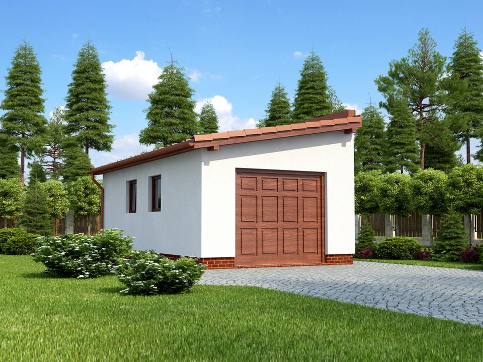 Fundamenty betonowe. Ściany zewnętrzne z bloczków z betonu komórkowego. Więźba dachowa garażu drewniana, krokwiowa.