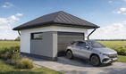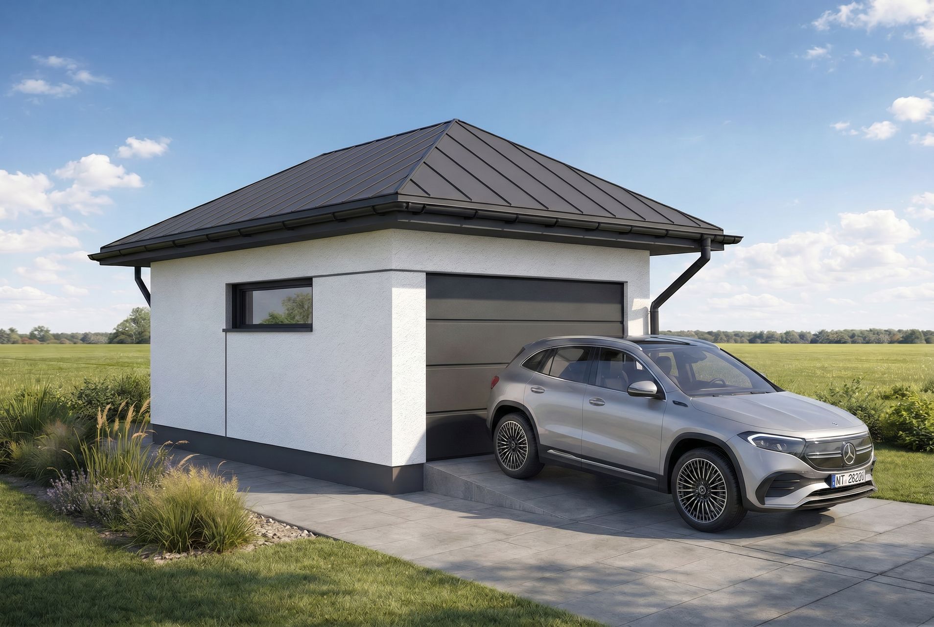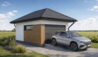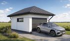 Garaż jednostanowiskowy Silverstone 1.0 to elegancki projekt garażu z dachem czterospadowym, który łączy wysoką estetykę z solidną konstrukcją. Budynek zapewnia jedno przestronne miejsce postojowe, a jego zwarta bryła pozwala na łatwe usytuowanie obiektu na działce jako wolnostojącego zaplecza dla samochodu.