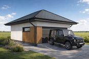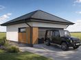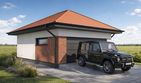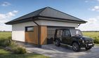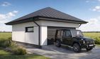 Garaż dwustanowiskowy Silverstone 2.0+1 to funkcjonalny projekt garażu z dachem czterospadowym, charakteryzujący się wydłużoną bryłą idealną na węższe działki. Budynek łączy strefę parkowania dla dwóch samochodów z oddzielnym zapleczem gospodarczym umieszczonym w tylnej części obiektu.