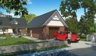Graficzne opracowanie rzutów poglądowych widocznych na karcie projektu zostało wykonane przez Extradom.pl. Prezentowane przez Extradom.pl wizualizacje wykonane zostały przez autora projektu i należy poczytywać je jedynie za przykład i propozycję wykończenia, wizję architektoniczną autora projektu. Ostateczne wykończenie budynku może nastąpić na wiele sposobów. Szczegółowe rozwiązania zastosowane w oferowanej dokumentacji - w tym również ilość, lokalizacje i wygląd okien, drzwi, kominów - mogą w niewielkim stopniu różnić się od prezentowanej wizualizacji budynku.