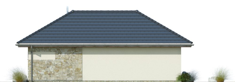 Ściany zewnętrzne: pustak ceramiczny firmy LEIER o gr. 30cm + tynk. Dach: czterospadowy, konstrukcja drewniana, pokryty dachówką ceramiczną. Źródło ciepła: brak - garaż nieogrzewany. Wentylacja: grawitacyjna. Stolarka okienna i drzwiowa: drzwi PVC lub drewniane, brama garażowa segmentowa.