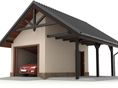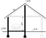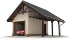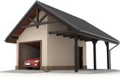 Technologia tradycyjna, ławy i ściany fundamentowe betonowe, ściany murowane z pustaków z betonu komórkowego grubości 24 cm, Dach dwuspadowy o konstrukcji drewnianej, pokryty blachodachówką, tynk zewnętrzny. Brama garażowa segmentowa. Wykończenie: Ściany zewnętrzne wykończone tynkiem silikonowym w kolorze jasnym. Cokół budynku wykonany tynkiem mozaikowym. Wymiary bram garażowych: 240x225.