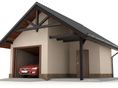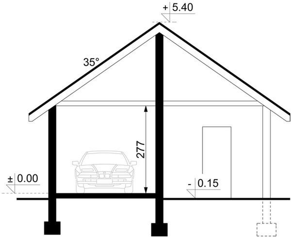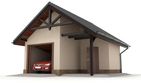 Technologia tradycyjna, ławy i ściany fundamentowe betonowe, ściany murowane z pustaków z betonu komórkowego grubości 24 cm, Dach dwuspadowy o konstrukcji drewnianej, pokryty blachodachówką, tynk zewnętrzny. Brama garażowa segmentowa. Wykończenie: Ściany zewnętrzne wykończone tynkiem silikonowym w kolorze jasnym. Cokół budynku wykonany tynkiem mozaikowym. Wymiary bram garażowych: 240x225.