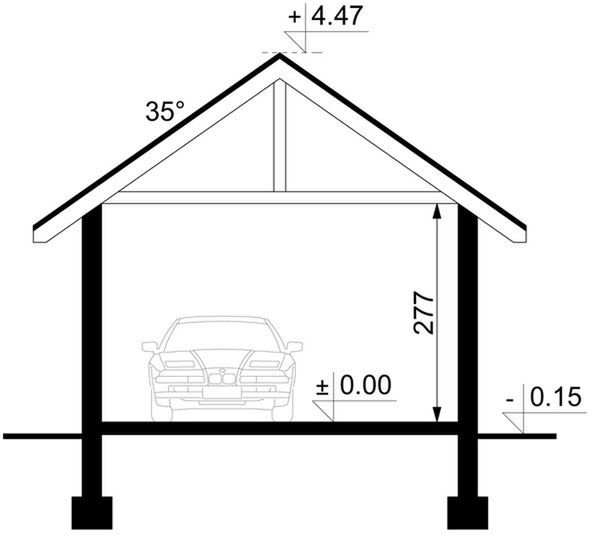 Technologia tradycyjna, ławy i ściany fundamentowe betonowe, ściany murowane z pustaków z betonu komórkowego grubości 24 cm, Dach czterospadowy o konstrukcji drewnianej, pokryty blachodachówką, tynk zewnętrzny. Brama garażowa segmentowa. Wykończenie: Ściany zewnętrzne wykończone tynkiem silikonowym w kolorze jasnym. Cokół budynku wykonany tynkiem mozaikowym. Wymiary bram garażowych: 400x225.