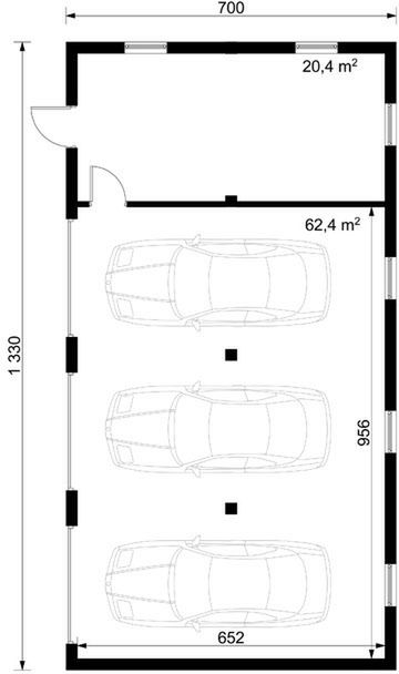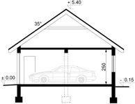 Technologia tradycyjna, ławy i ściany fundamentowe betonowe, ściany murowane z pustaków z betonu komórkowego grubości 24 cm, Dach dwuspadowy o konstrukcji drewnianej, pokryty blachodachówką, tynk zewnętrzny. Brama garażowa segmentowa. Wykończenie: Ściany zewnętrzne wykończone tynkiem silikonowym w kolorze jasnym. Cokół budynku wykonany tynkiem mozaikowym. Wymiary bram garażowych: 240x225.