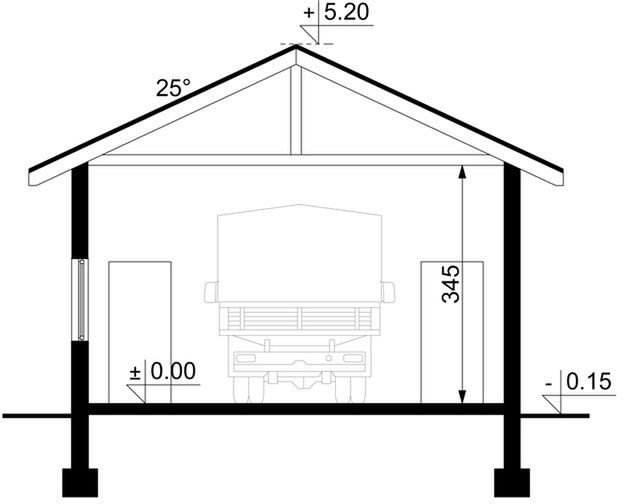Technologia tradycyjna, ławy i ściany fundamentowe betonowe, ściany murowane z pustaków z betonu komórkowego grubości 24 cm, Dach dwuspadowy o konstrukcji drewnianej, pokryty blachodachówką, tynk zewnętrzny. Brama garażowa segmentowa. Wykończenie: Ściany zewnętrzne wykończone tynkiem silikonowym w kolorze jasnym. Cokół budynku wykonany tynkiem mozaikowym. Wymiary bram garażowych: 300x300.