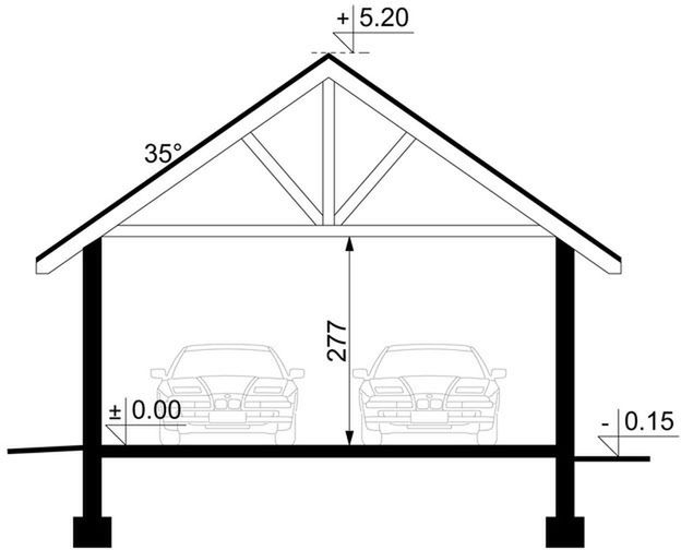 Technologia tradycyjna, ławy i ściany fundamentowe betonowe, ściany murowane z pustaków z betonu komórkowego grubości 24 cm, Dach dwuspadowy o konstrukcji drewnianej, pokryty blachodachówką, tynk zewnętrzny. Brama garażowa segmentowa. Wykończenie: Ściany zewnętrzne wykończone tynkiem silikonowym w kolorze jasnym. Cokół budynku wykonany tynkiem mozaikowym. Wymiary bram garażowych: 240x225.