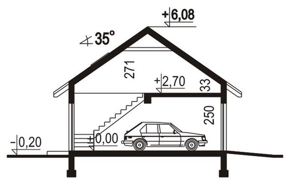 Ściany zewnętrzne: gr. 24 cm z bloczków SILKA. Strop: żelbetowy. Schody: drewniane. Dach: czterospadowy o nachyleniu 35 stopni, krycie dachówką. Poziom kalenicy: 6,28 m od terenu. Dodatkowe informacje: pow. strychu 35,90 m2