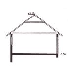 Ściany zewnętrzne: murowane gr. 24 cm z pustaków ALFA. Dach: więżba drewniana, dwuspadowy o nachyleniu 37 stopni, krycie blachą trapezową. Poziom kalenicy: 5,40 od terenu. Dodatkowe informacje: alternatywa z dachem jednospadowym. długość segmentu 3,0 m, wysokość wrót 2,1 m. Zapotrzebowanie energii elektr. 1250 kWh/rok