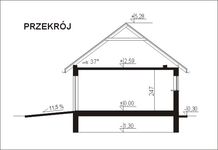Ściany zewnętrzne: gr. 29 cm z pustaków ceramicznych MAX. Strop: żelbetowy. Dach: dwuspadowy, o nachyleniu 37 stopni, więźba krokwiowo-jętkowa, krycie blachą głębokotłoczoną powlekaną. Poziom kalenicy: 5,58 m od terenu. Dodatkowe informacje: zapotrzebowanie na energię elektryczną: 800 kWh/rok