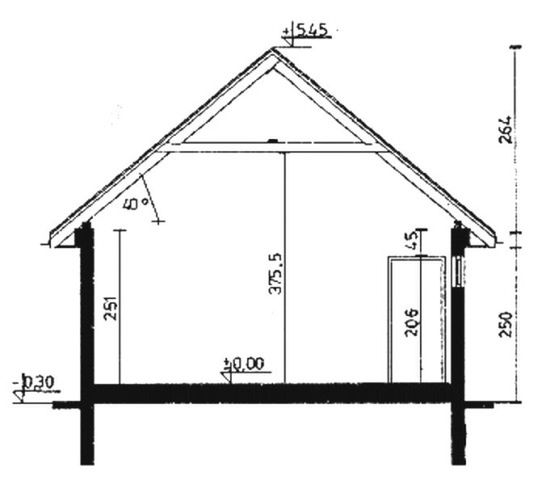 Ściany zewnętrzne: gr. 20 cm z pustaków żużlo-betonowych. Dach: dwu i czterospadowy, o nachyleniu 40 stopni, więźba krokwiowo-jętkowa, krycie blachą głęboko tłoczoną powlekaną lub dachówką. Poziom kalenicy: 5,75 m od terenu. Dodatkowe informacje: powierzchnia netto: 45,40 m kw,