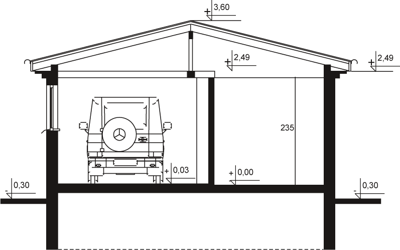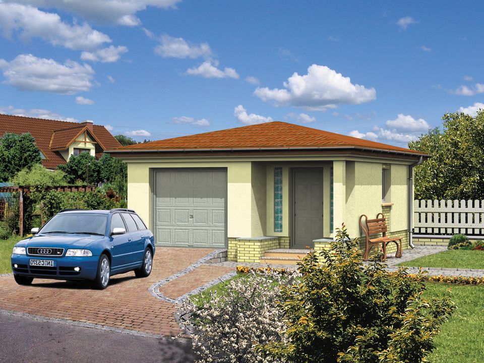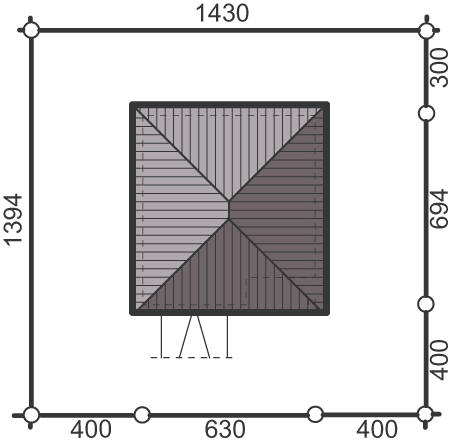 Ściany zewnętrzne: gr. 24cm z bloczków z betonu komórkowego. Dach: czterospadowy o kacie nachylenia 14 stopni, krycie gontem papowym. Poziom kalenicy: 3,90 m od terenu