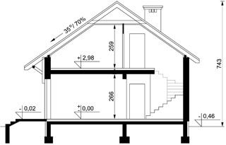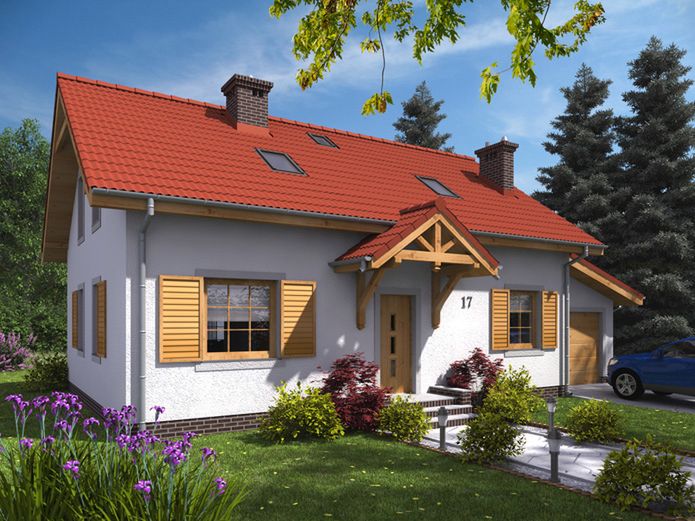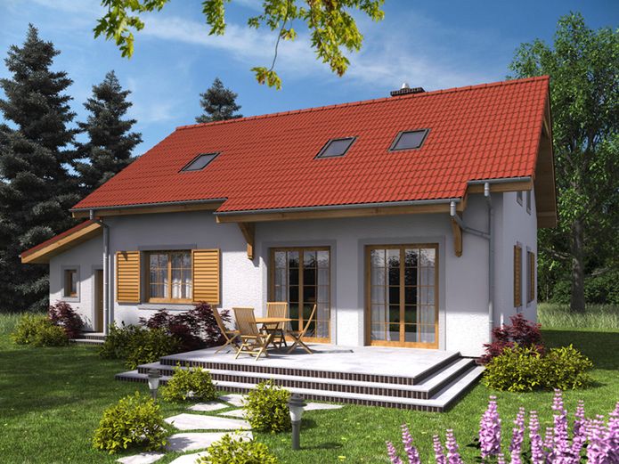 Graficzne opracowanie rzutów poglądowych widocznych na karcie projektu zostało wykonane przez Extradom.pl. Prezentowane przez Extradom.pl wizualizacje wykonane zostały przez autora projektu i należy poczytywać je jedynie za przykład i propozycję wykończenia, wizję architektoniczną autora projektu. Ostateczne wykończenie budynku może nastąpić na wiele sposobów. Szczegółowe rozwiązania zastosowane w oferowanej dokumentacji - w tym również ilość, lokalizacje i wygląd okien, drzwi, kominów - mogą w niewielkim stopniu różnić się od prezentowanej wizualizacji budynku.