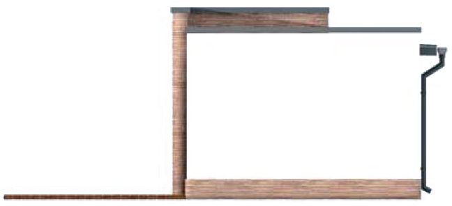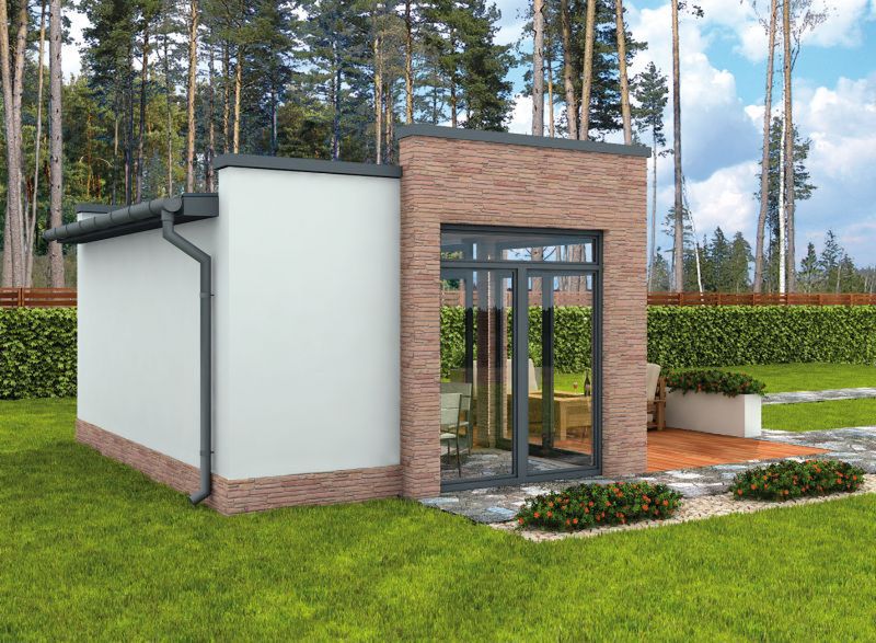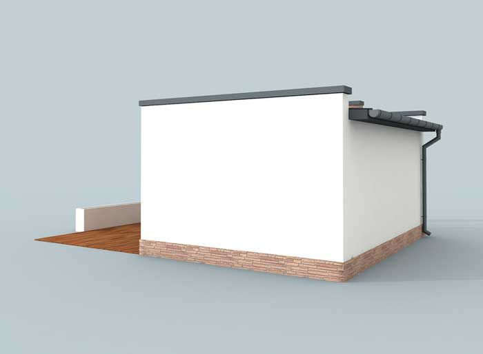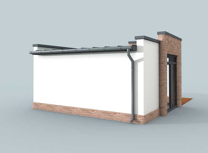 Technologia tradycyjna - ściany zewnętrzne nośne murowane grubości 25cm - wszystkie ściany wykonane pustaków ceramicznych "POROTHERM" - wysokość budynku 4,47m - dach płaski jednospadowy 3° - więźba dachowa drewniana w układzie krokwiowym - pokrycie dachu - papa lub gonty bitumiczne