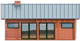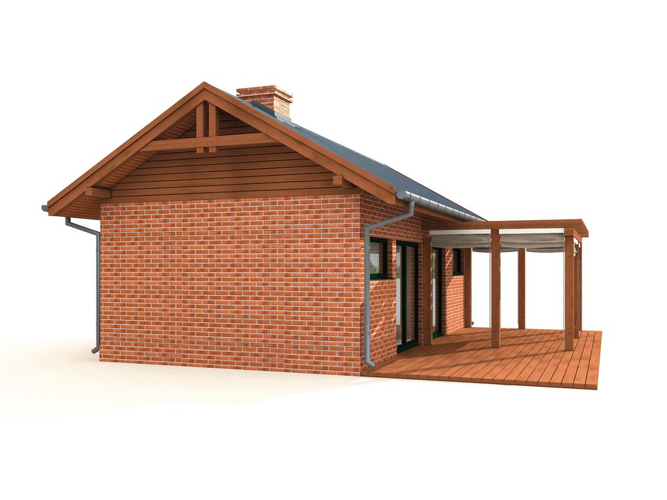 Graficzne opracowanie rzutów poglądowych widocznych na karcie projektu zostało wykonane przez Extradom.pl. Prezentowane przez Extradom.pl wizualizacje wykonane zostały przez autora projektu i należy poczytywać je jedynie za przykład i propozycję wykończenia, wizję architektoniczną autora projektu. Ostateczne wykończenie budynku może nastąpić na wiele sposobów. Szczegółowe rozwiązania zastosowane w oferowanej dokumentacji - w tym również ilość, lokalizacje i wygląd okien, drzwi, kominów - mogą w niewielkim stopniu różnić się od prezentowanej wizualizacji budynku.