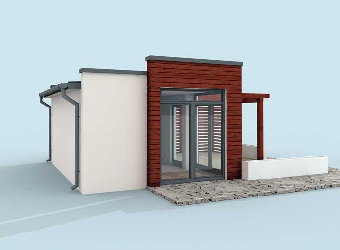Graficzne opracowanie rzutów poglądowych widocznych na karcie projektu zostało wykonane przez Extradom.pl. Prezentowane przez Extradom.pl wizualizacje wykonane zostały przez autora projektu i należy poczytywać je jedynie za przykład i propozycję wykończenia, wizję architektoniczną autora projektu. Ostateczne wykończenie budynku może nastąpić na wiele sposobów. Szczegółowe rozwiązania zastosowane w oferowanej dokumentacji - w tym również ilość, lokalizacje i wygląd okien, drzwi, kominów - mogą w niewielkim stopniu różnić się od prezentowanej wizualizacji budynku.