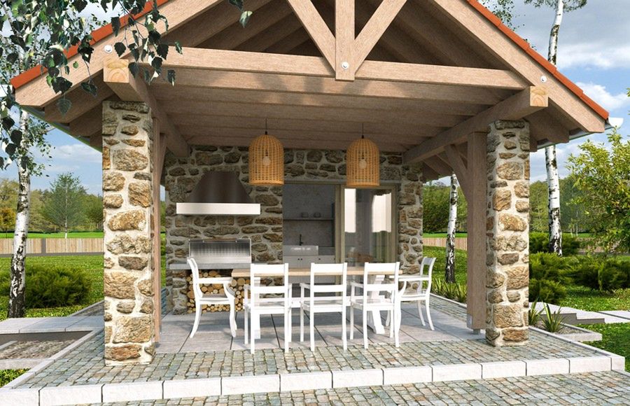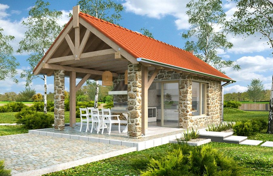 Kuchnia Letnia to doskonałe funkcjonalne wzbogacenie każdego większego ogrodu. Moze stanowić zaplecze techniczne i magazynowe dla działki tj, drewutnia.