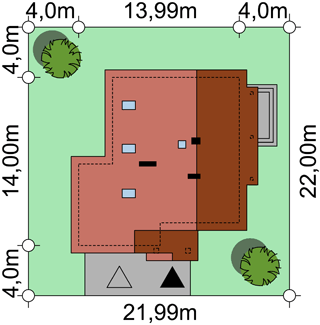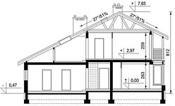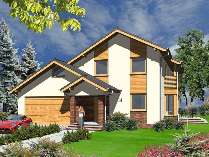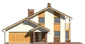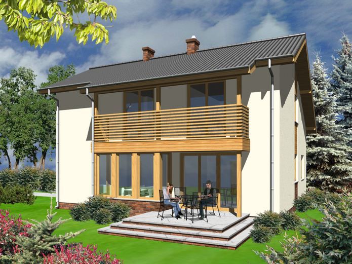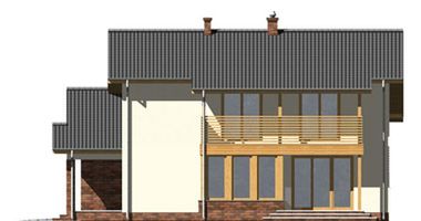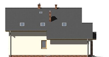 Graficzne opracowanie rzutów poglądowych widocznych na karcie projektu zostało wykonane przez Extradom.pl. Prezentowane przez Extradom.pl wizualizacje wykonane zostały przez autora projektu i należy poczytywać je jedynie za przykład i propozycję wykończenia, wizję architektoniczną autora projektu. Ostateczne wykończenie budynku może nastąpić na wiele sposobów. Szczegółowe rozwiązania zastosowane w oferowanej dokumentacji - w tym również ilość, lokalizacje i wygląd okien, drzwi, kominów - mogą w niewielkim stopniu różnić się od prezentowanej wizualizacji budynku.