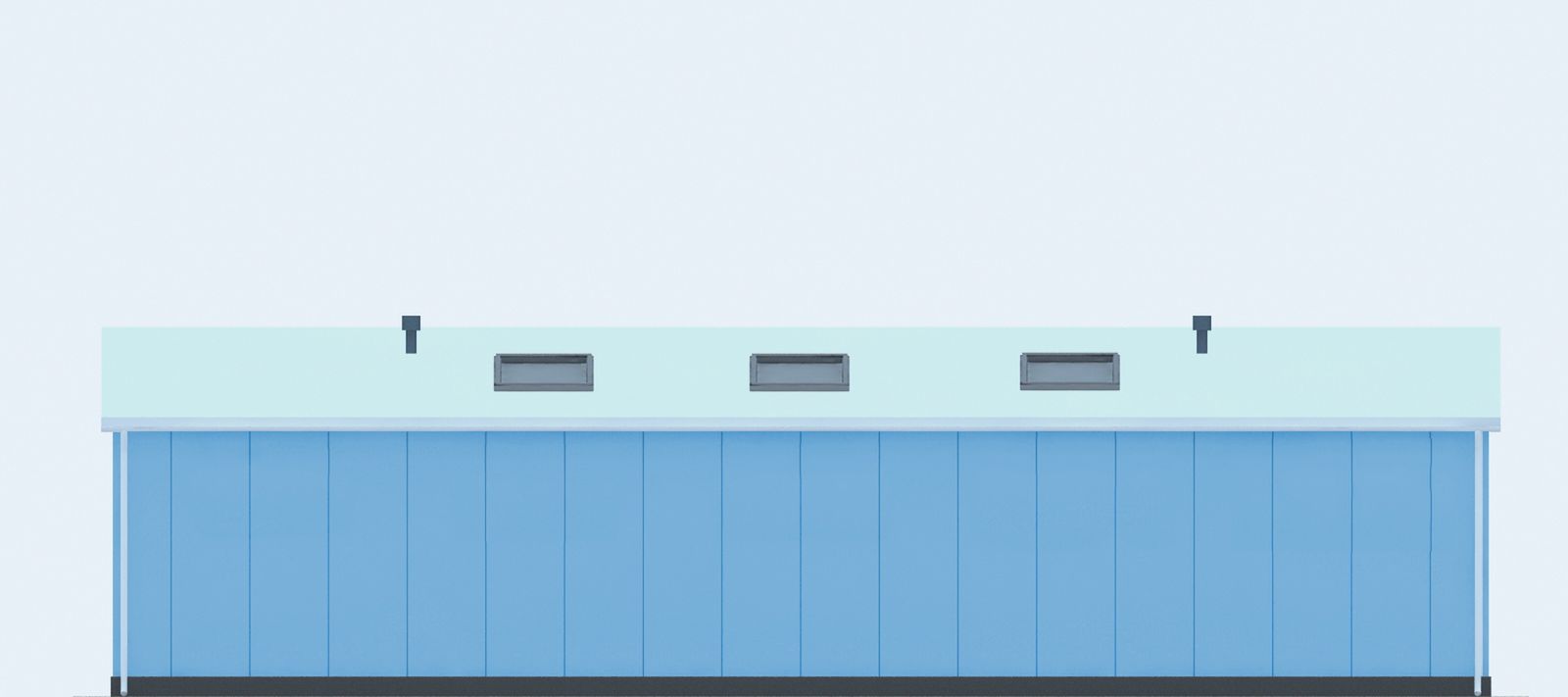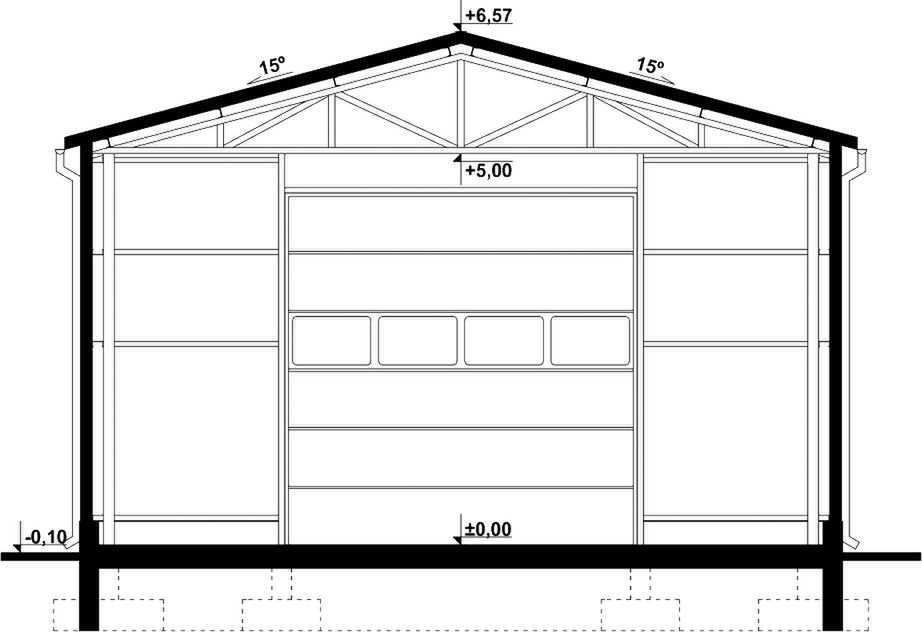 Budynek konstrukcji stalowej. Ściany z płyty warstwowej. Bramy o wymiarach 4,50×4,50m. Więźba dachowa dwuspadowa, stalowa, pokryta płytą warstwową.
